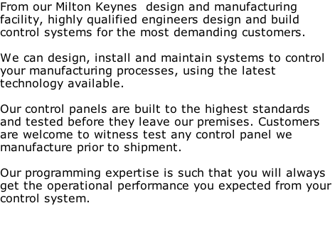 YOUR PARTNER IN AUTOMATION We provide  Project Management Concept Design Panel Build Programming HMI / SCADA Installation Commissioning Training Service Remote support Competence's Include  Low voltage controls Servo & Stepper drives Inverter drives Safety systems PLC systems HMI and SCADA Vision systems Robotics